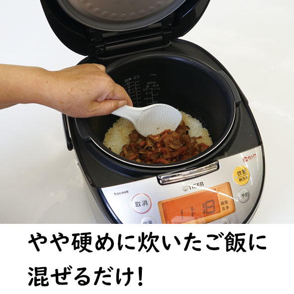 - ※「とり飯の素」を温めてから、ご飯と混ぜると、よりおいしく食べられます。