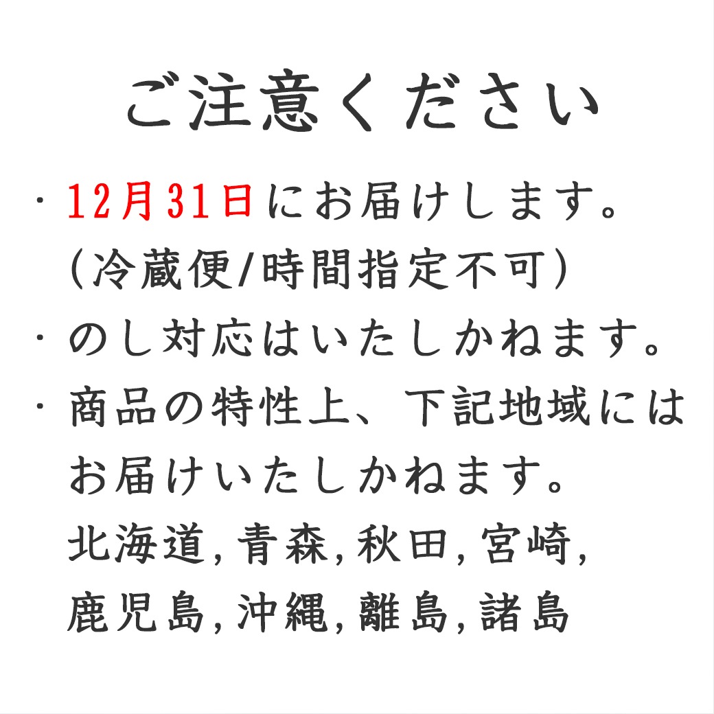 2025年12月31日※時節柄、時間指定は承っておりません。