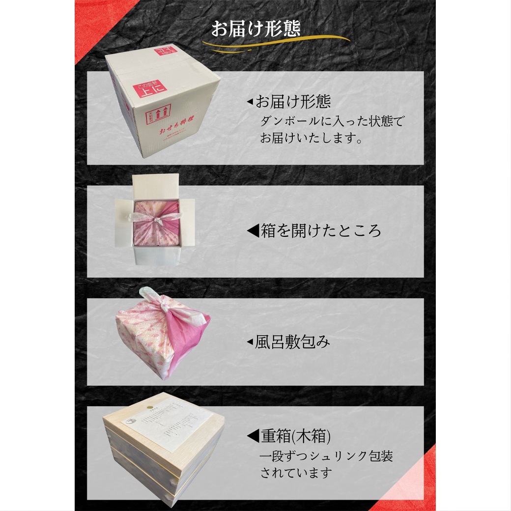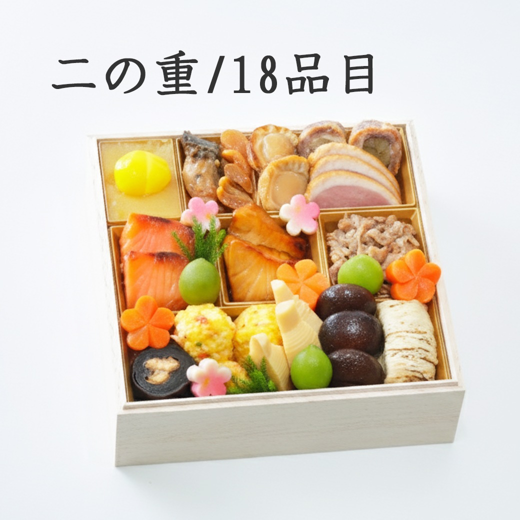 | 重箱のサイズ | 幅20×奥行20×高さ6.5(cm)×2段 |