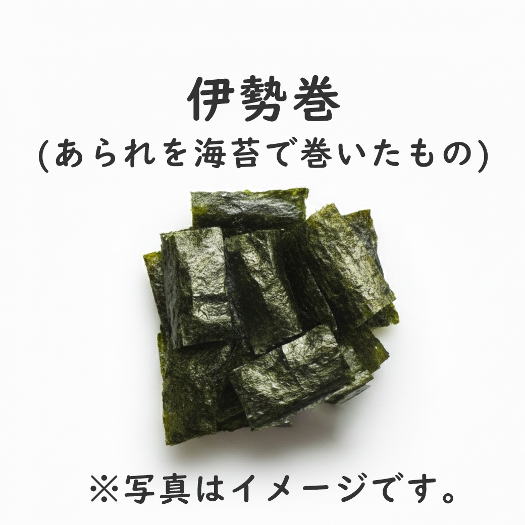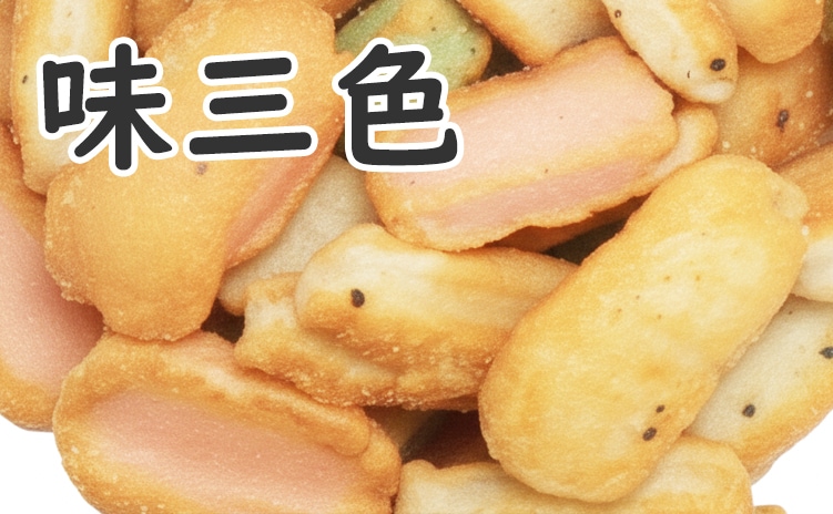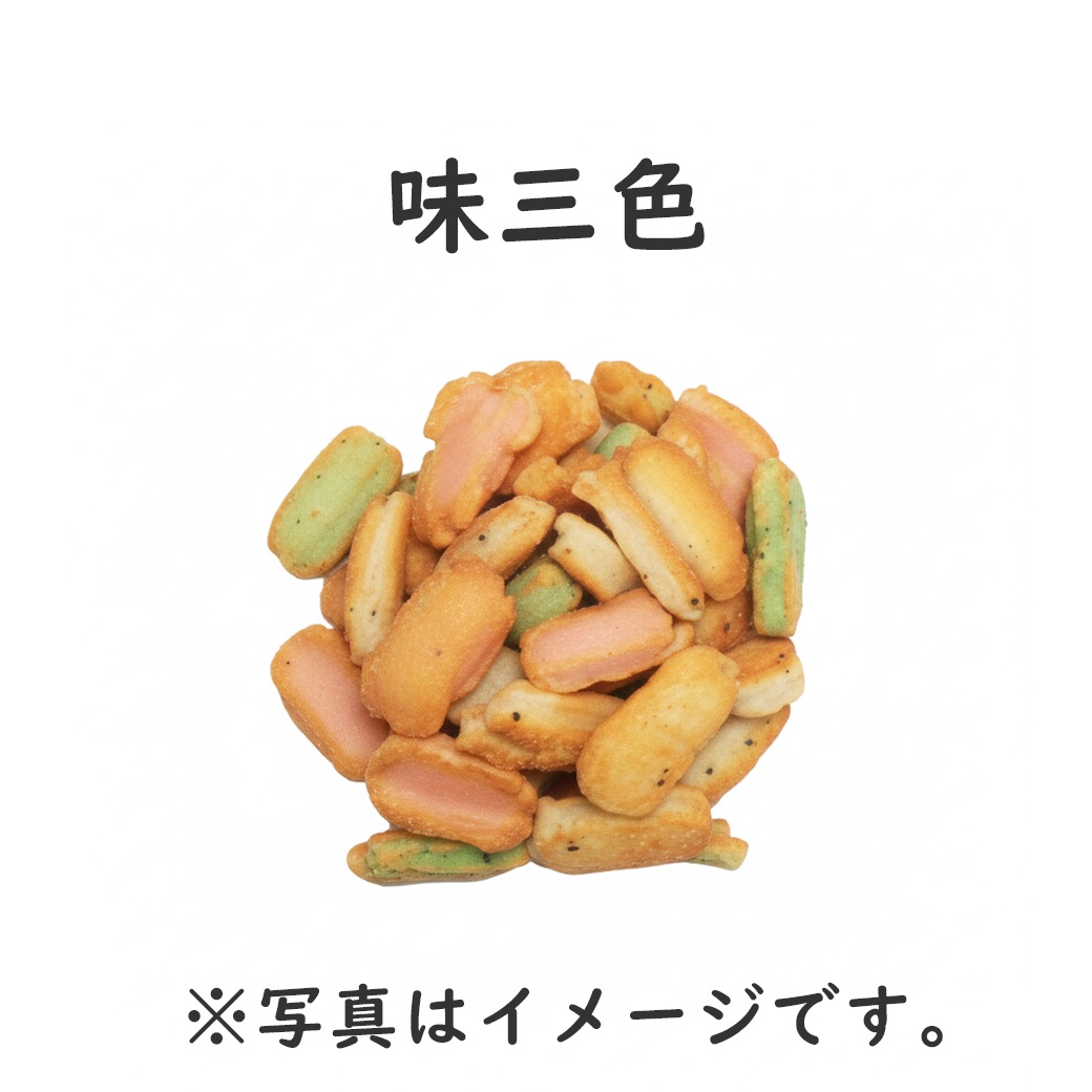 ※田舎あられ、伊勢巻、浮千鳥、味三色のミックス |
