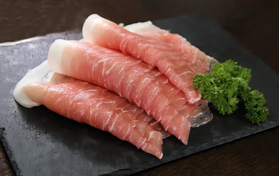 赤身と脂身が層状に重なっており、別名「三枚肉」とも呼ばれ、見た目の美しさだけでなく、脂身の甘みと赤身の旨みが絶妙なバランスで調和しているのが特徴です。薄切り肉は炒め物や煮物、ブロック肉は角煮やチャーシューなどの煮込み料理にお使いいただけます。