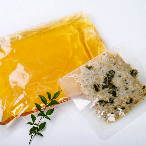 - ②付属の特製だし・具材を加え炊飯器で炊きます。