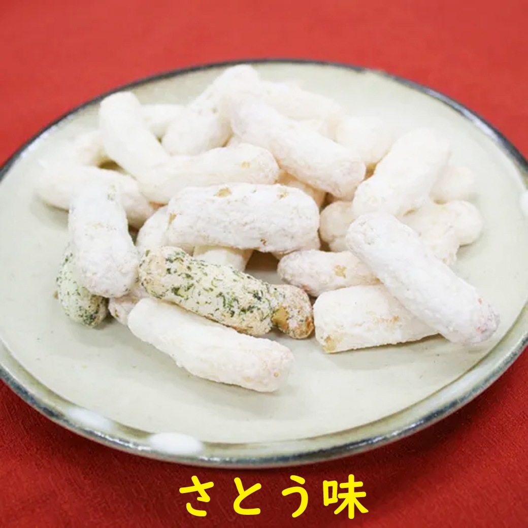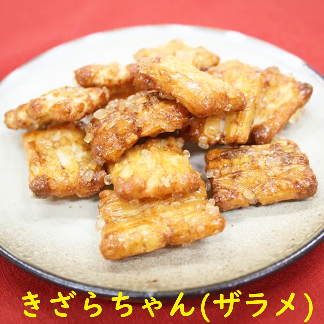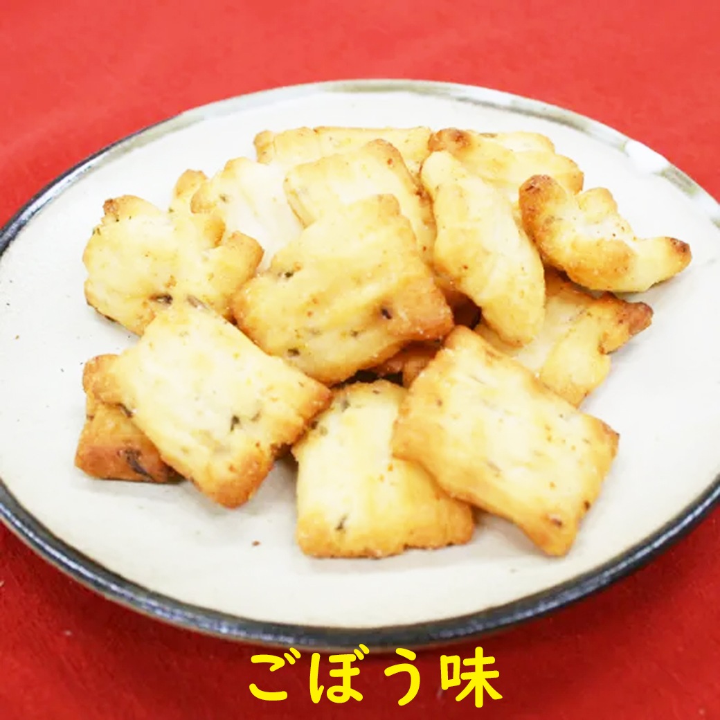 黒こしょう味 ごぼう味 焼えび味 しお味 のり味 さとう味 黒豆サラダ味 いか味 サラダ味 こんぶ味 チーズ&ペッパー味 きざらちゃん(ザラメ味) |