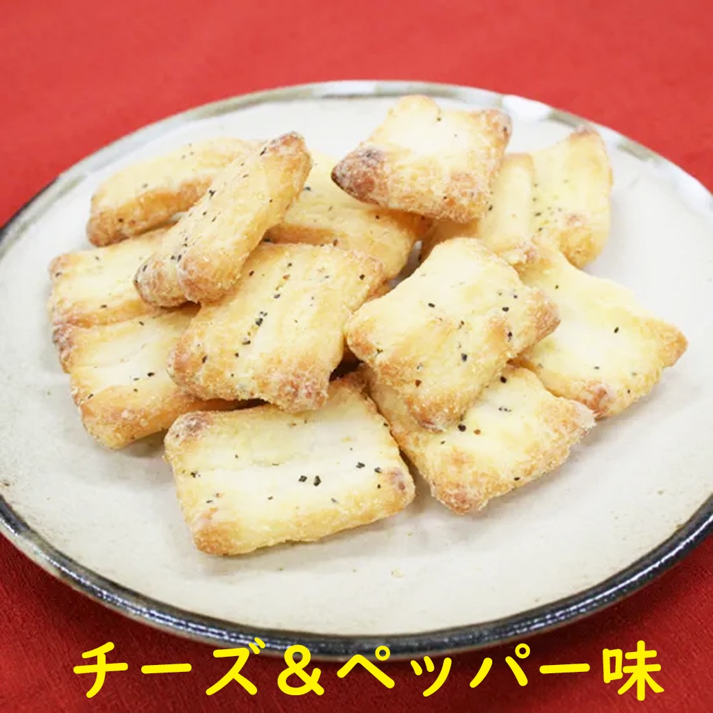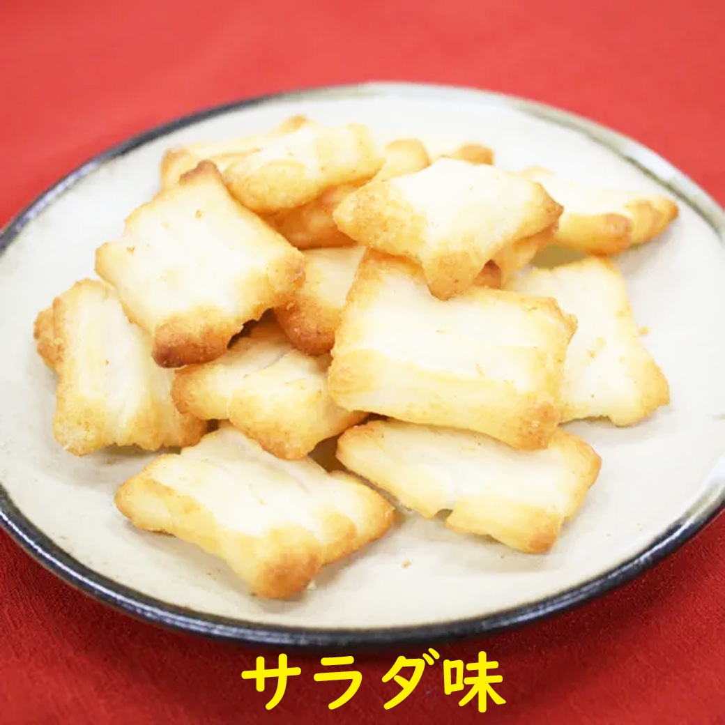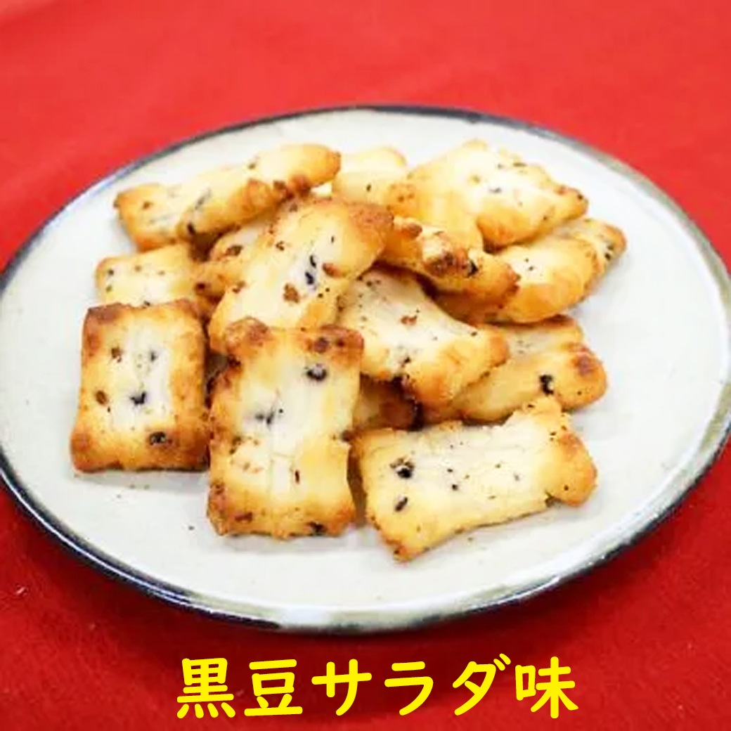 黒こしょう味 ごぼう味 焼えび味 しお味 のり味 さとう味 黒豆サラダ味 いか味 サラダ味 こんぶ味 チーズ&ペッパー味 きざらちゃん(ザラメ味) |
