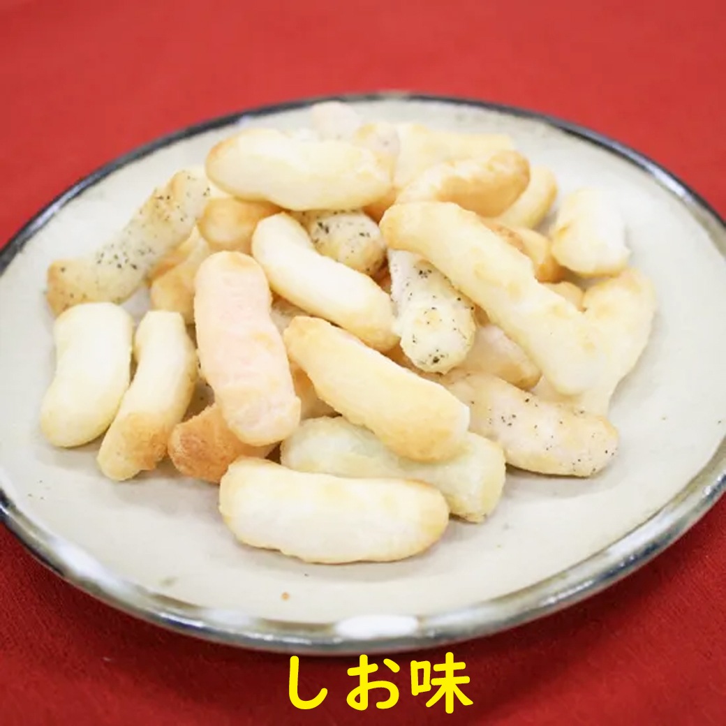 黒こしょう味 ごぼう味 焼えび味 しお味 のり味 さとう味 黒豆サラダ味 いか味 サラダ味 こんぶ味 チーズ&ペッパー味 きざらちゃん(ザラメ味) |